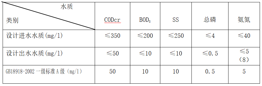 16.設計污水進(jìn)水水質(zhì)及排放標準: