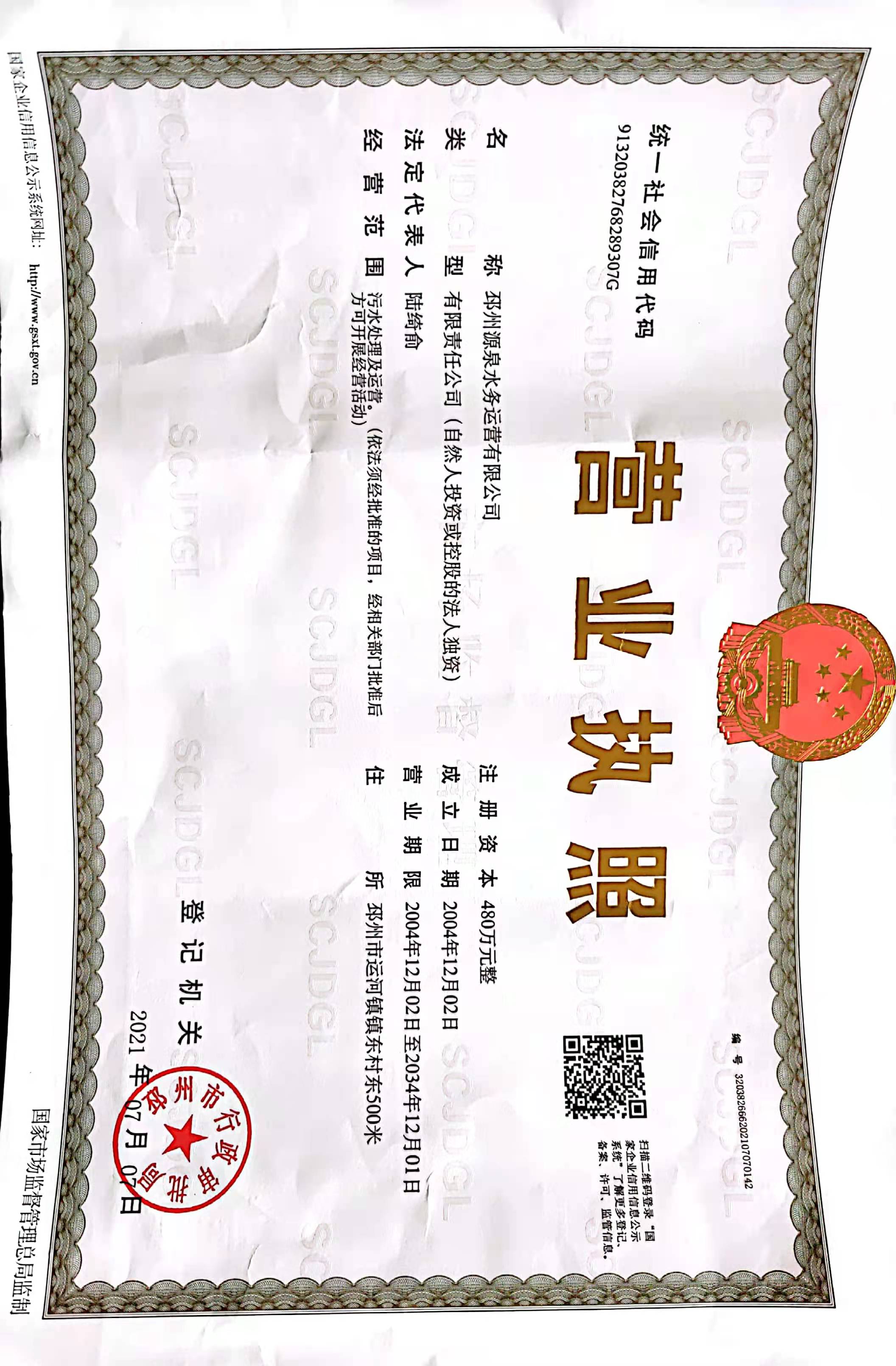 2004年邳州市政府將該工程以TOT模式實(shí)行市場(chǎng)化運(yùn)作,通過公開競(jìng)標(biāo),由徐州源泉環(huán)保工程有限公司(現(xiàn)為江蘇大眾水務(wù)集團(tuán)有限公司)獲得該工程30年的經(jīng)營(yíng)權(quán)。特許經(jīng)營(yíng)期滿后,該污水處理廠將完好無償?shù)匾平唤o市政府。2005年5月1日邳州源泉水務(wù)運(yùn)營(yíng)有限公司接管運(yùn)營(yíng)后,充分發(fā)揮自己的專業(yè)優(yōu)勢(shì)與管理優(yōu)勢(shì),科學(xué)管理,規(guī)范運(yùn)營(yíng),確保出水水質(zhì)優(yōu)于GB18918—2002城鎮(zhèn)污水處理廠污染物排放標(biāo)準(zhǔn)一級(jí)標(biāo)準(zhǔn)B標(biāo)準(zhǔn)。2013年根據(jù)國家“十二五”淮河流域水污染防治規(guī)劃要求,邳州市委市政府及相關(guān)部門要求公司啟動(dòng)一期工程提標(biāo)改造項(xiàng)目,出水標(biāo)準(zhǔn)由GB18918-2002一級(jí)B標(biāo)準(zhǔn)提高到A標(biāo)準(zhǔn),提標(biāo)改造工程于